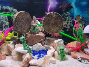 *宇宙人と魚が共存している不思議な世界